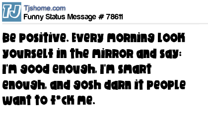 X says Be positive. Every morning look yourself in the mirror and say: I'm good enough, I'm smart enough, and gosh darn it people want to f*ck me.