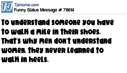 X says To understand someone you have to walk a mile in their shoes. That's why men don't understand women, they never learned to walk in heels.