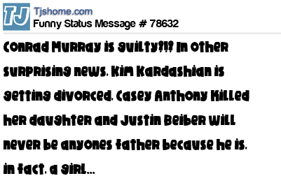 X says Conrad Murray is guilty?!? In other surprising news, Kim Kardashian is getting divorced, Casey Anthony killed her daughter and Justin Beiber will never be anyones father because he is, in fact, a girl...