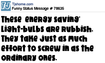 - # 69445 These ‘energy saving' light-bulbs are bullsh!t. They take just as much effort to screw in as the ordinary ones.