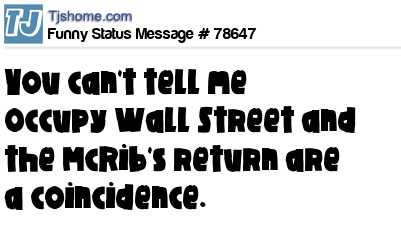 - # 77107 You can't tell me Occupy Wall Street and the McRib's return are a coincidence.