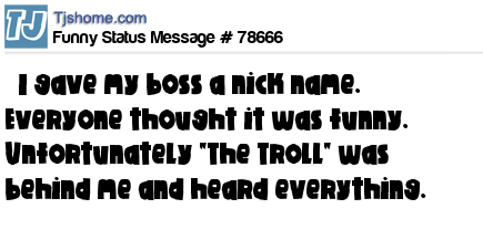 X is I gave my boss a nick name. Everyone thought it was funny. Unfortunately "The Troll" was behind me and heard everything.