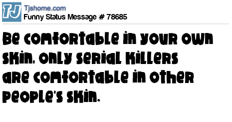 X says Be comfortable in your own skin, only serial killers are comfortable in other people's skin.