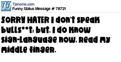 X says SORRY HATER I don't speak bulls**t; but, I do know sign-language now, read my middle finger.