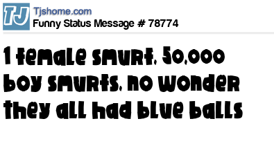 X says 1 female smurf, 50,000 boy smurfs, no wonder they all had blue balls