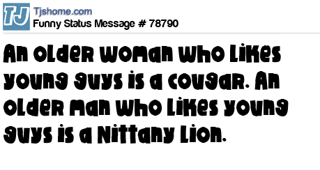 - # 78756 If women that like younger men are cougars are older men that llike young men Nittany Lions?