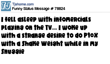 X I fell asleep with infomercials playing on the TV.... I woke up with a strange desire to do P90X with a Shake Weight while in my Snuggie