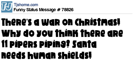 X There's a war on Christmas! Why do you think there are 11 pipers piping? Santa needs human shields!