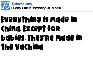 - # 55780 Everything is made in China except for babies... they're made in VaChina.