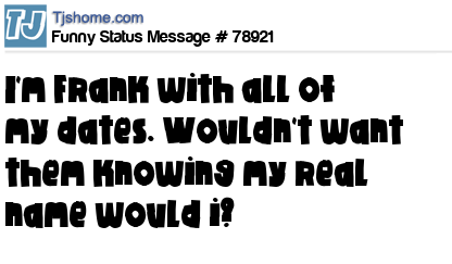 X I'm Frank with all of my dates. Wouldn't want them knowing my real name would i?