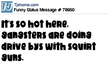 - # 64729 It's so hot in MY town, gangs are doing drive-bys with squirt guns!