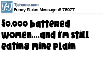 - # 121382 They say 9 out of 10 women are battered, and here I am still eating mine plain