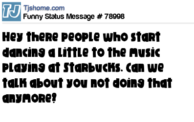 X Hey there people who start dancing a little to the music playing at Starbucks. Can we talk about you not doing that anymore?