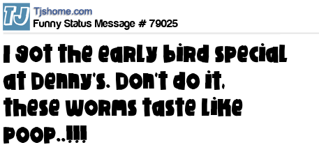 X I got the early bird special at Denny's. Don't do it, these worms taste like poop..!!!