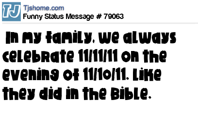 X In my family, we always celebrate 11/11/11 on the evening of 11/10/11. Like they did in the Bible.