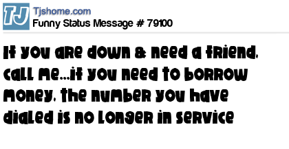 - # 130705 If you need a friend (text me) need a laugh (call me) need a hug (stop by) need money (this number is no longer in service)