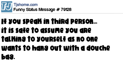 X If you speak in third person… it is safe to assume you are talking to yourself as no one wants to hang out with a douche bag.