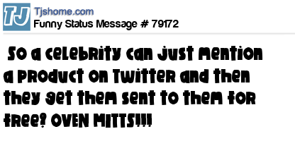 X So a celebrity can just mention a product on Twitter and then they get them sent to them for free? OVEN MITTS!!!