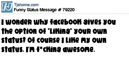 - # 28799 wondering why Facebook bothers to give the option of "liking" my own comment? Of course I like my own comments. I'm awesome.