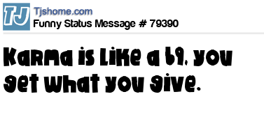 - # 38097 X says Karma is like 69.....you get what you give....:)