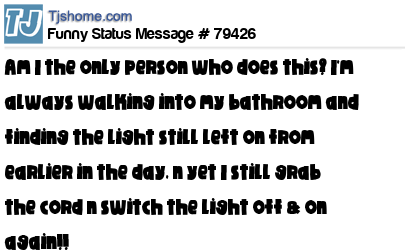 X Am I the only person who does this? I'm always walking into my bathroom and finding the light still left on from earlier in the day, n yet I still grab the cord n switch the light off & on again!!