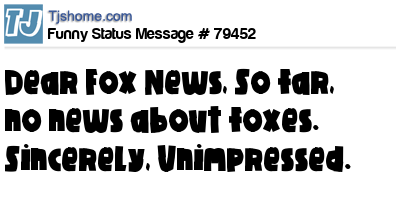 - # 51490 Dear Fox News, So far no news about foxes. Sincerely, Unimpressed