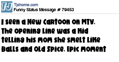 X says I seen a New Cartoon on MTV, The opening line was a kid telling his mom she smelt like Balls and Old Spice. Epic moment