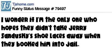 X I wonder if I'm the only one who hopes they didn't take Jerry Sandusky's shoe laces away when they booked him into jail.