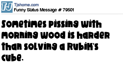 X says Sometimes pissing with morning wood is harder than solving a Rubik's cube.
