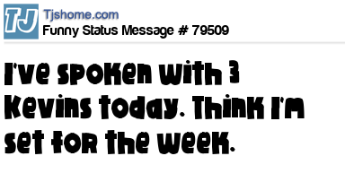 X I've spoken with 3 Kevins today. Think I'm set for the week.