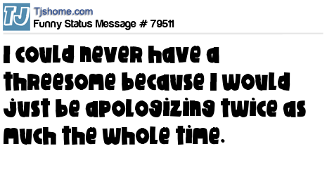 X is I could never have a threesome because I would just be apologizing twice as much the whole time.