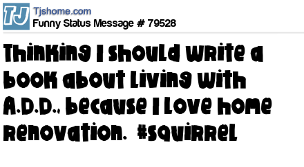 X is thinking I should write a book about living with A.D.D., because I love home renovation. #squirrel