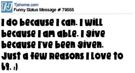 X I do because I can. I will because I am able. I give because I've been given. Just a few reasons I love to 69. ;)