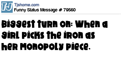 X is Biggest turn on: When a girl picks the iron as her Monopoly piece.