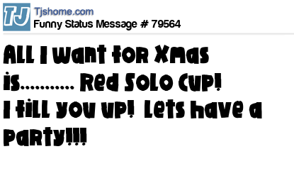 X All I want for Xmas is........... Red Solo Cup! I fill you up! Lets have a party!!!