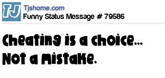 - # 134626 Stop saying you just can't help cheating. Cheating is not a disease, it is a choice dammit.