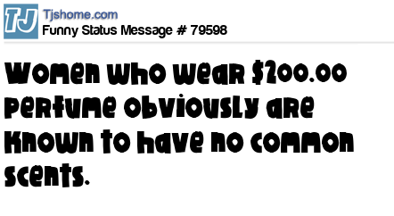 - # 37564 Women who wear $200.00 perfume obviously are known to have no common scents. :)