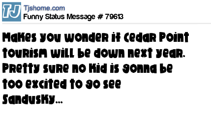 X Makes you wonder if Cedar Point tourism will be down next year. Pretty sure no kid is gonna be too excited to go see Sandusky...