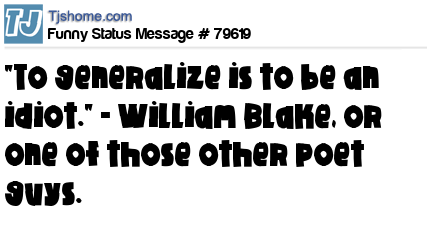 X "To generalize is to be an idiot." - William Blake, or one of those other poet guys.
