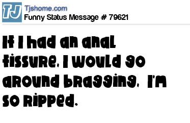 X If I had an anal fissure, I would go around bragging, “I'm so ripped.”