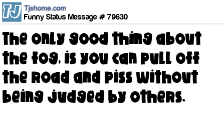 X The only good thing about the fog, is you can pull off the road and piss without being judged by others.