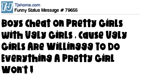 X says Boys Cheat On Pretty Girls with Ugly Girls , Cause Ugly Girls Are Willinggg To Do Everything A Pretty Girl Won't !