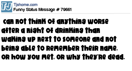 - # 50188 I can't think of anything worse after a night of drinking than waking up next to someone and not being able to remember their name, or how you met, or why they're dead.