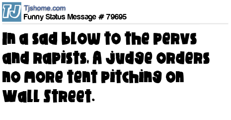 X In a sad blow to the pervs and rapists, A judge orders no more tent pitching on Wall Street.
