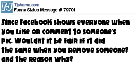 X is Since Facebook shows everyone when you like or comment to someone's pic. Wouldnt it be fair if it did the same when you remove someone? and the reason Why?