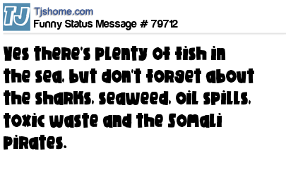 X says Yes there's plenty of fish in the sea, but don't forget about the sharks, seaweed, oil spills, toxic waste and the Somali pirates.