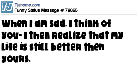 X  When I am sad, I think of you- I then realize that my life is still better then yours.