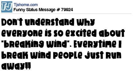 X is Don't understand why everyone is so excited about "breaking wind". Everytime I break wind people just run away!!