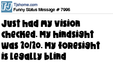 X just had my vision checked. My hindsight was 20/20. My foresight is legally blind