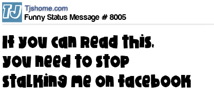 - # 12016 was told recently that it really doesn't constitute stalking if you inform the other party. I like that. So, Greater Facebook Community, I'm probably stalking you.